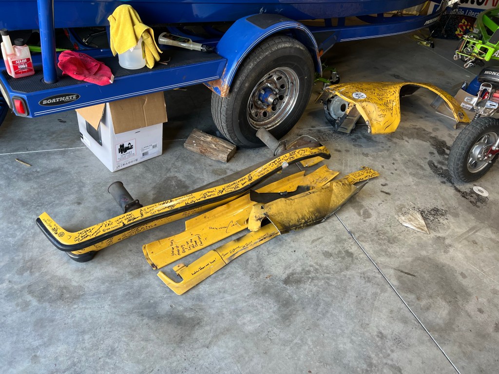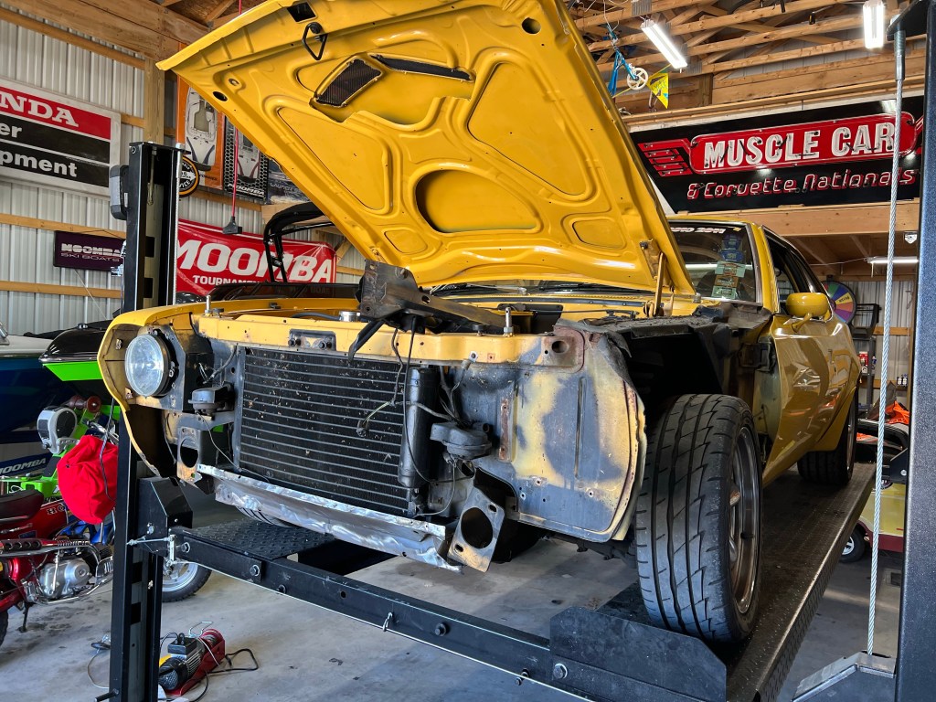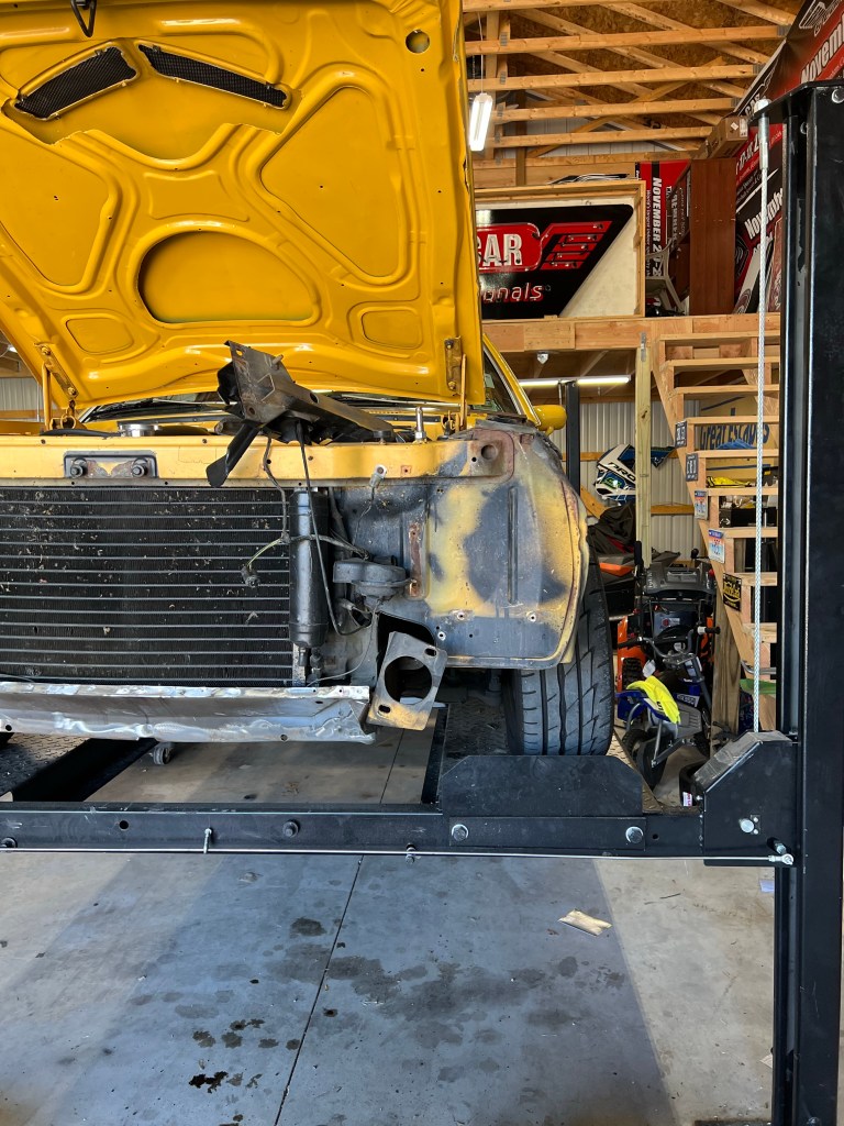 I was FINALLY able to start working on the Hornet – after months of waiting while working out the numbers I finally signed some stuff this week that has me motivated to start working on the car. I’m so excited to have gotten a few hours in the shop to start the tear down of our 1973 AMC Hornet. Future plans will be Control Freak Suspension front suspension and rear 4 link, Wilwood Disk Brakes, but first I need to get the car on a frame rack to see how tweaked it is.